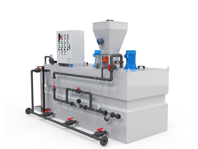 浩轩自动加药装置采用三厢式一体化结构,实现三槽同步工作,粉料投加、溶解搅拌、药剂熟化、药剂存储三槽同步运行,可无人值守连续运行,一体化占地空间小,配套有PLC集中控制系统,实现进料、进水、出药按照指定逻辑控制,能做到缺水、缺药、低液位自动报警。